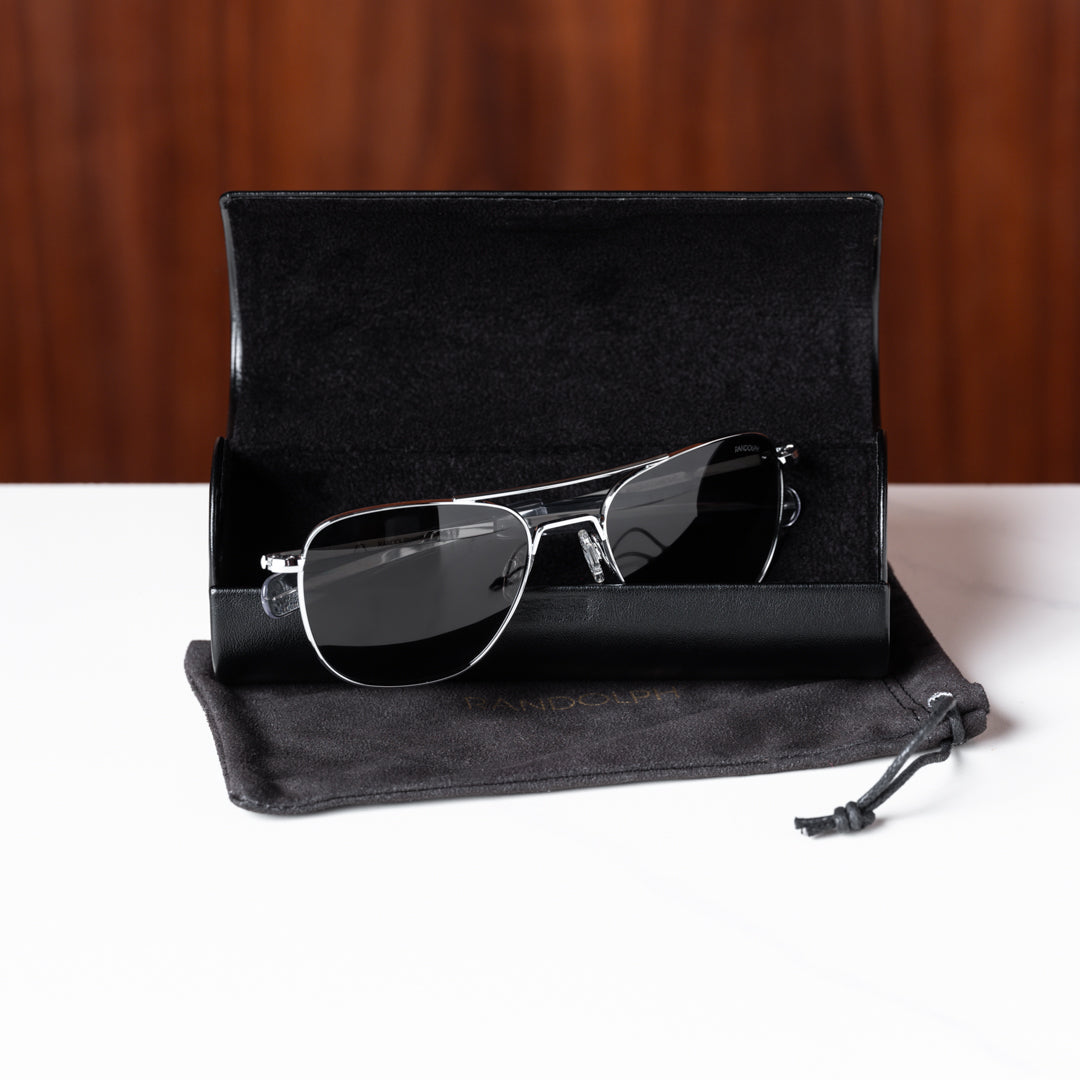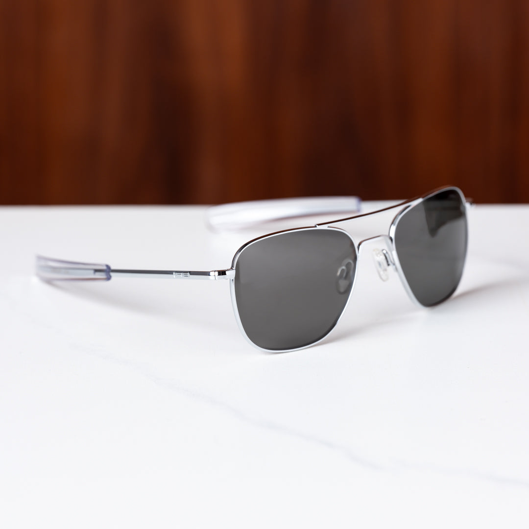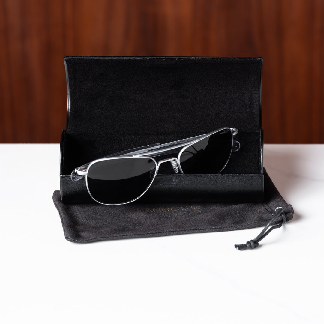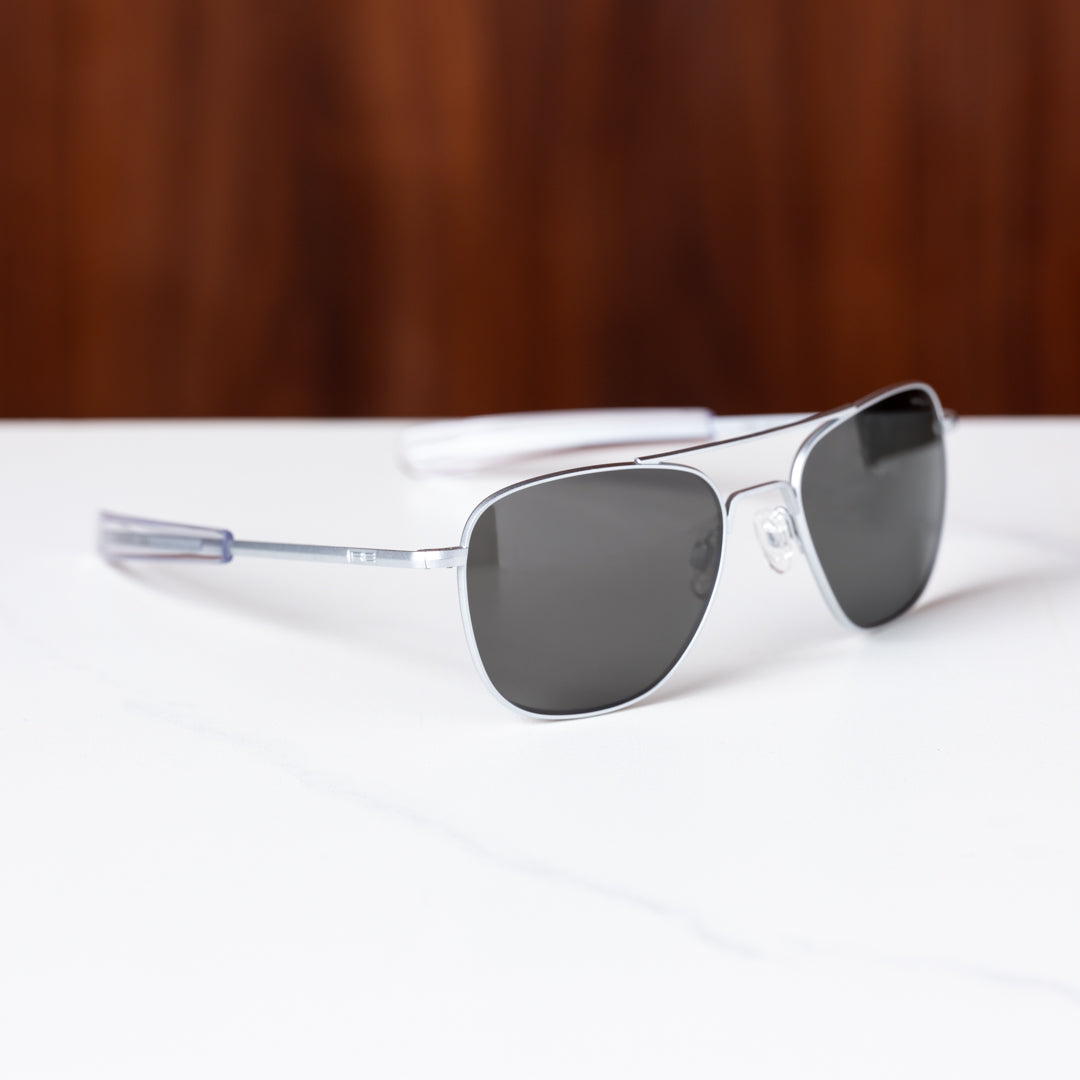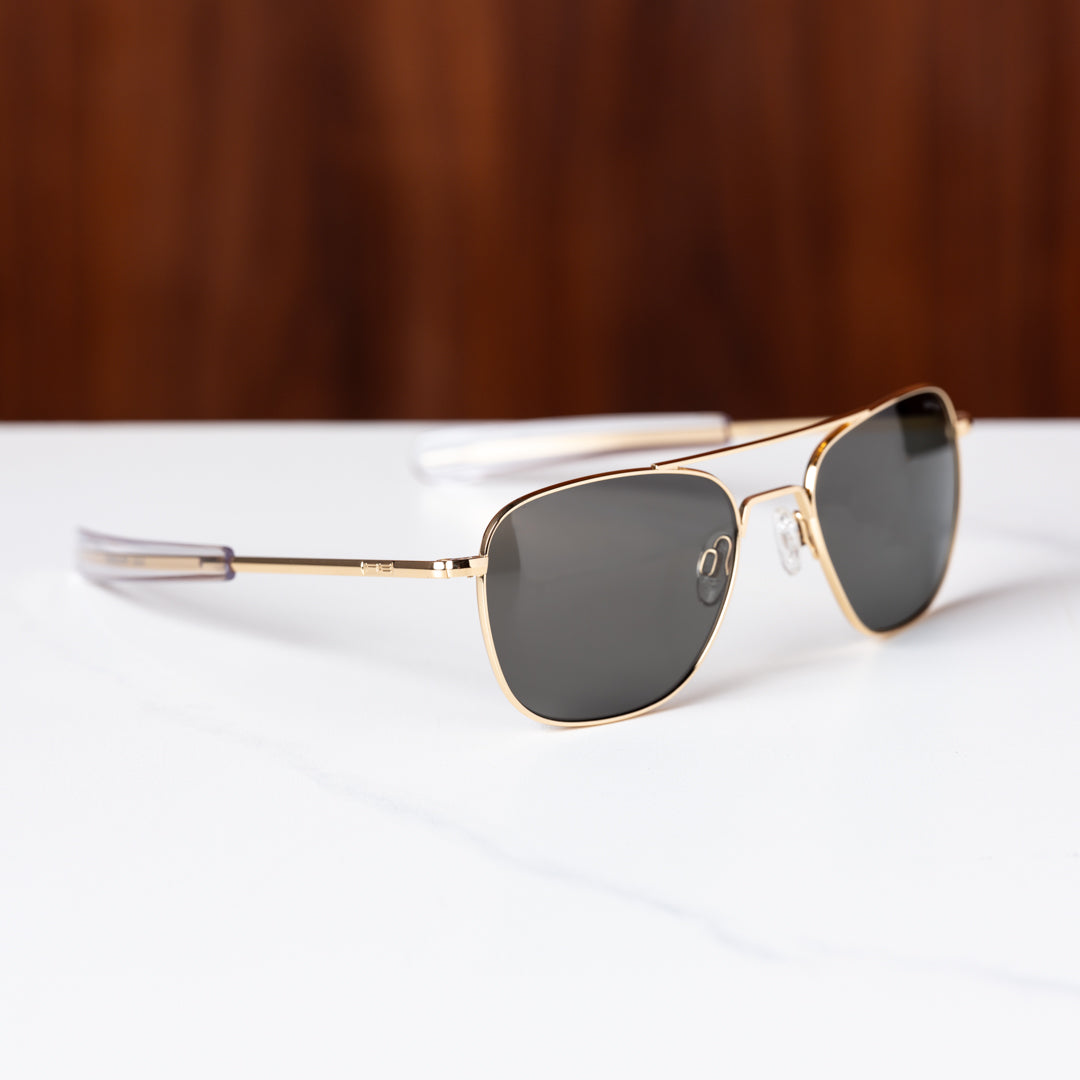 Entirely designed and handcrafted in the USA, these iconic Class A Aviators are the highest quality sunglasses produced. Engineered by Randolph, who's contract with the military for creating their signature American Gray lens and decades of exemplary craftsmanship made them the premier manufacturer of sunglasses in America.