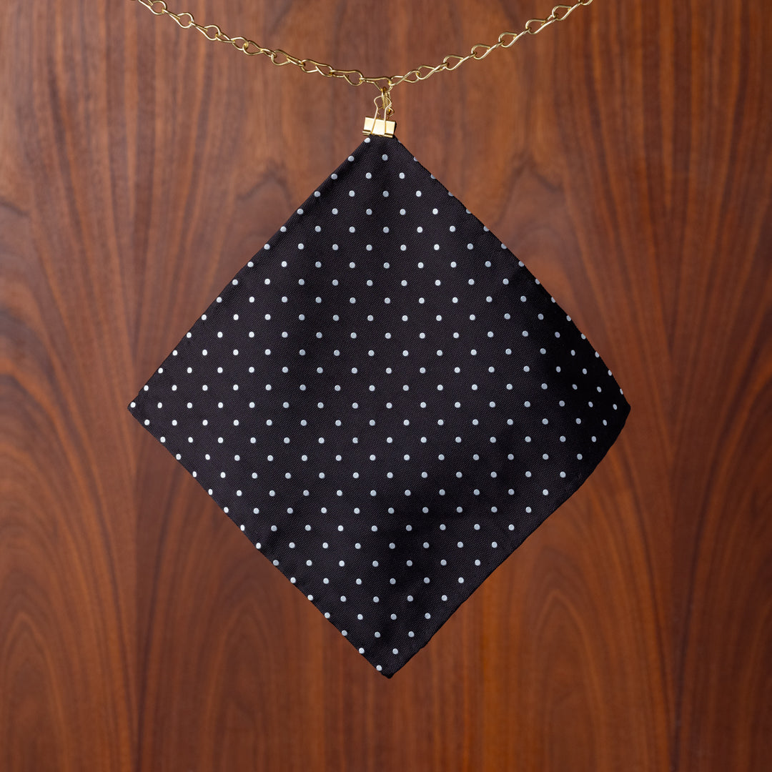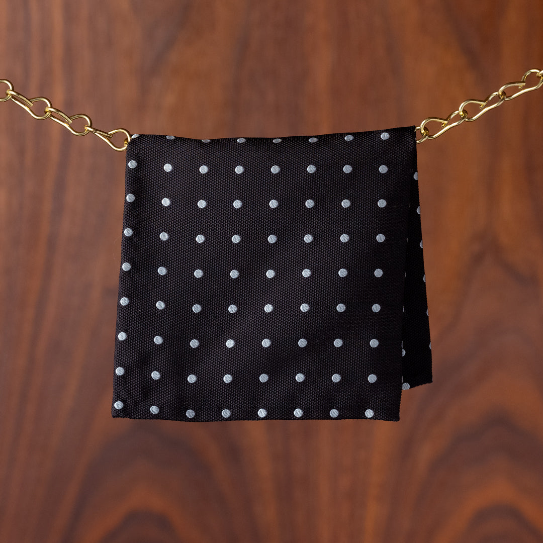 -Silk: Black with white polka dots; woven in England, in a small batch, exclusively for Wildwood & Company.