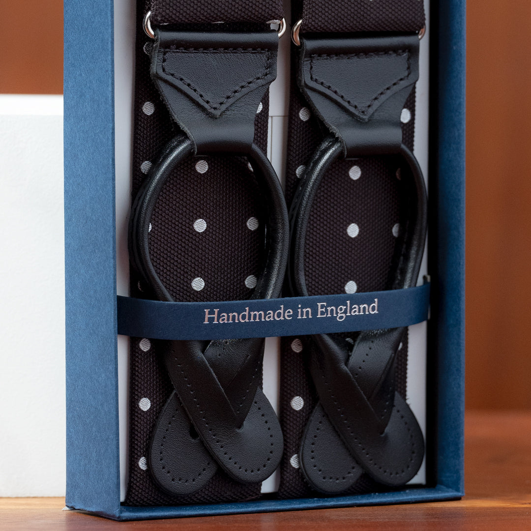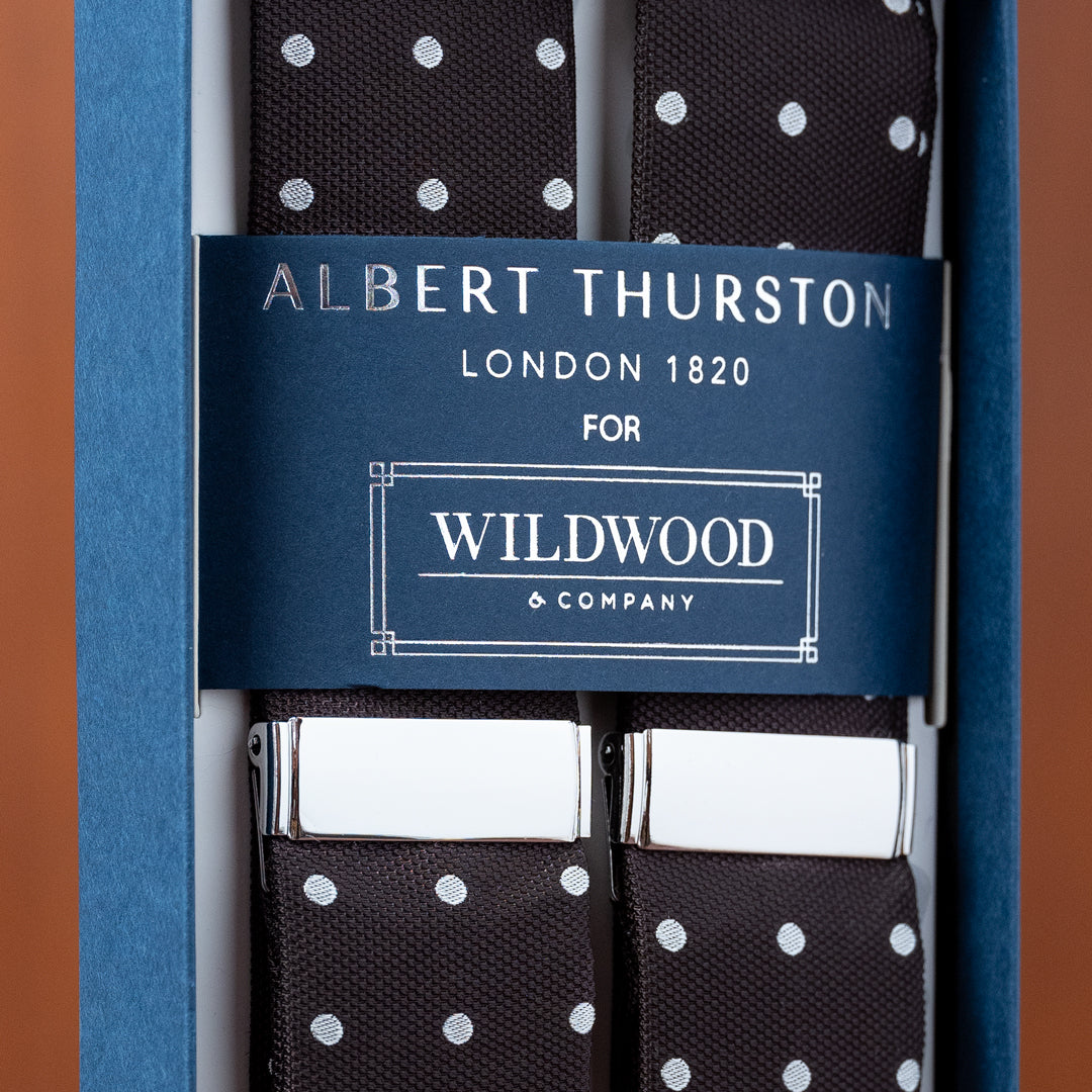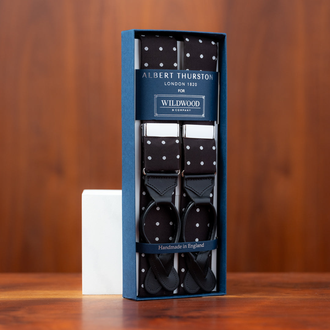 These suspenders (also known as braces in the UK) are handmade in our own unique silk, in collaboration with Albert Thurston, the world's top maker of suspenders since 1820 (who has also made braces for every James Bond film).