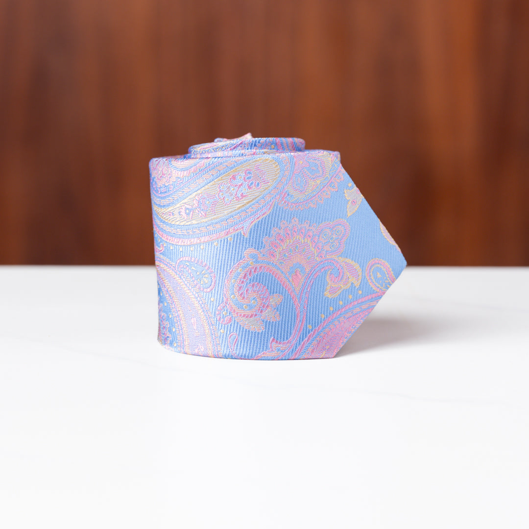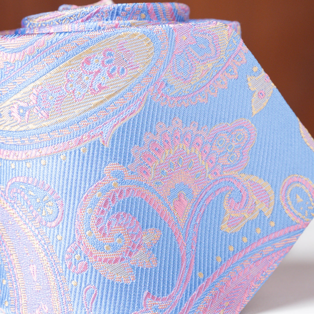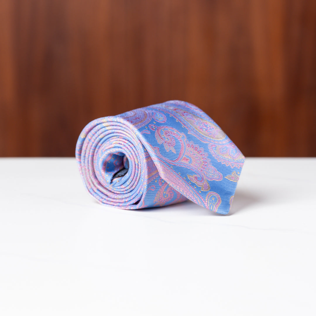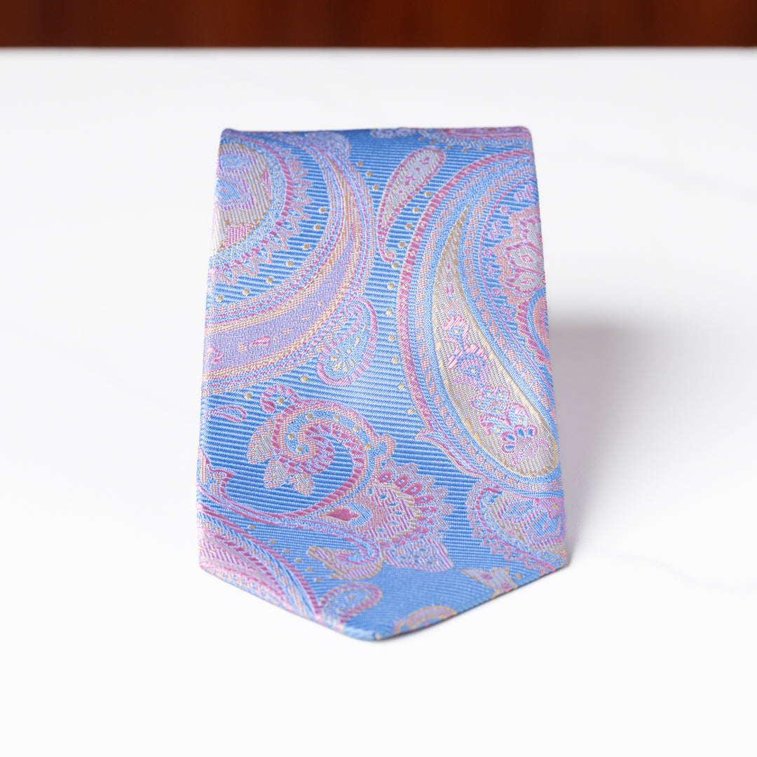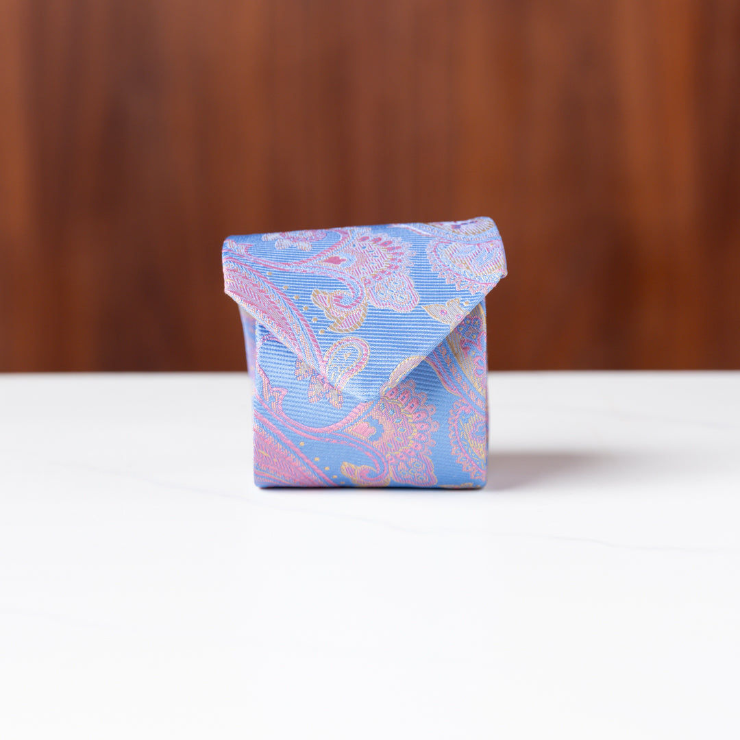 -Silk: Sky blue with light pink and gold buta house paisley; woven in England, in a small batch, exclusively for Wildwood & Company.