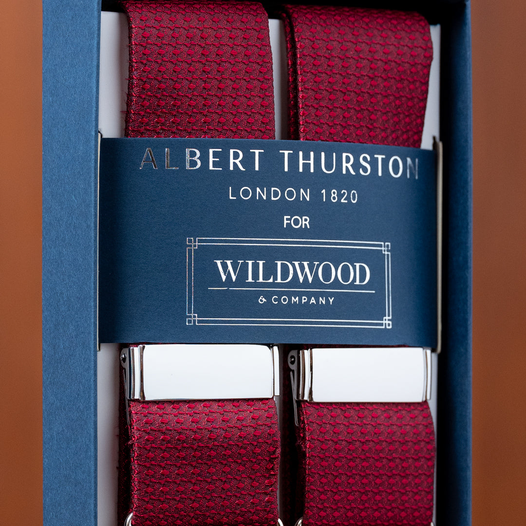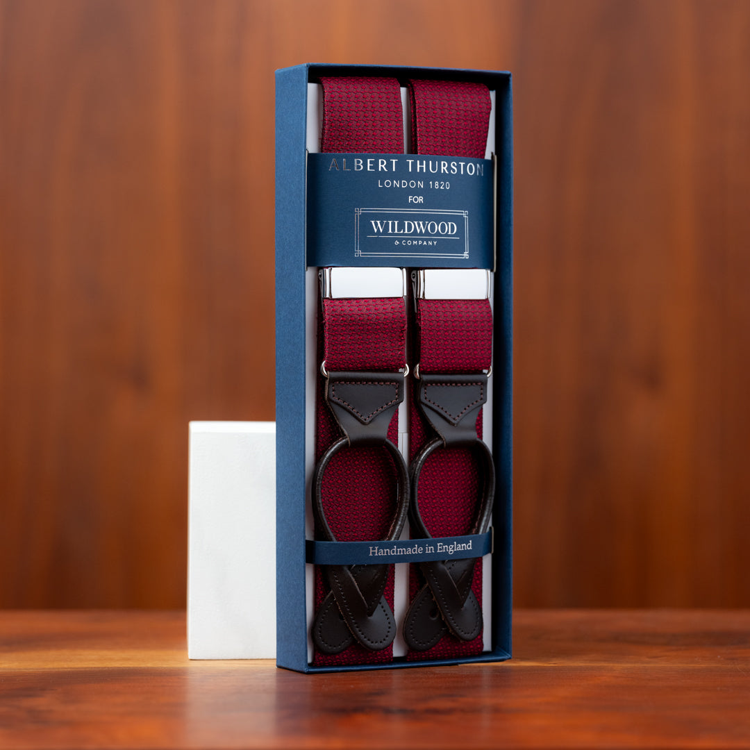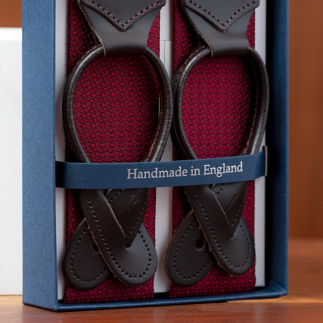 These suspenders (also known as braces in the UK) are handmade in our own unique silk, in collaboration with Albert Thurston, the world's top maker of suspenders since 1820 (who has also made braces for every James Bond film).
