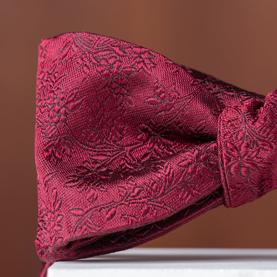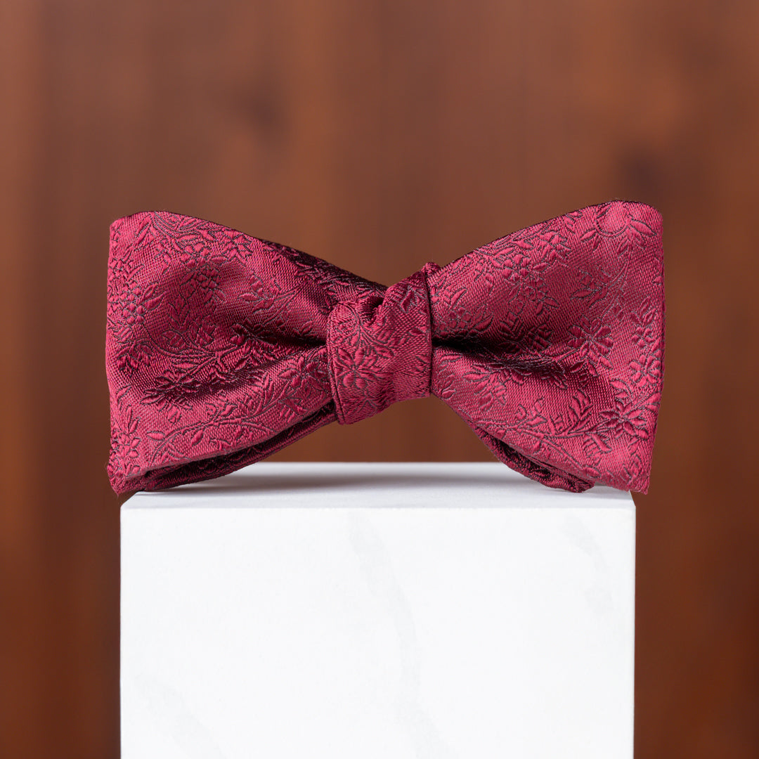 Burgundy Subtle Floral Silk Bow Tie