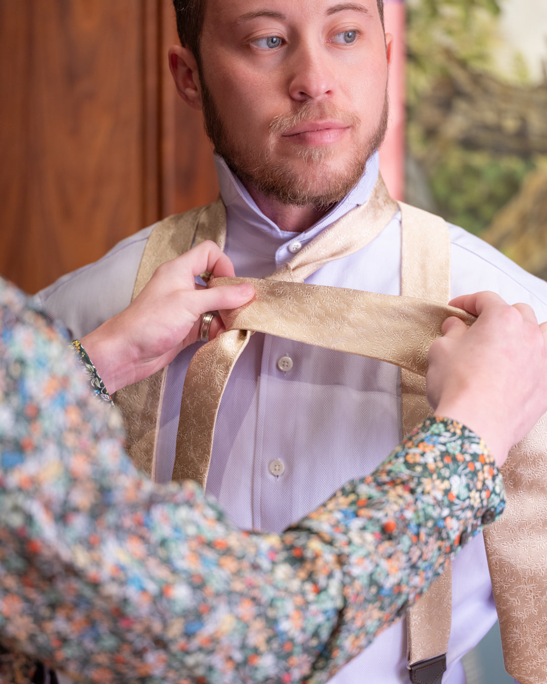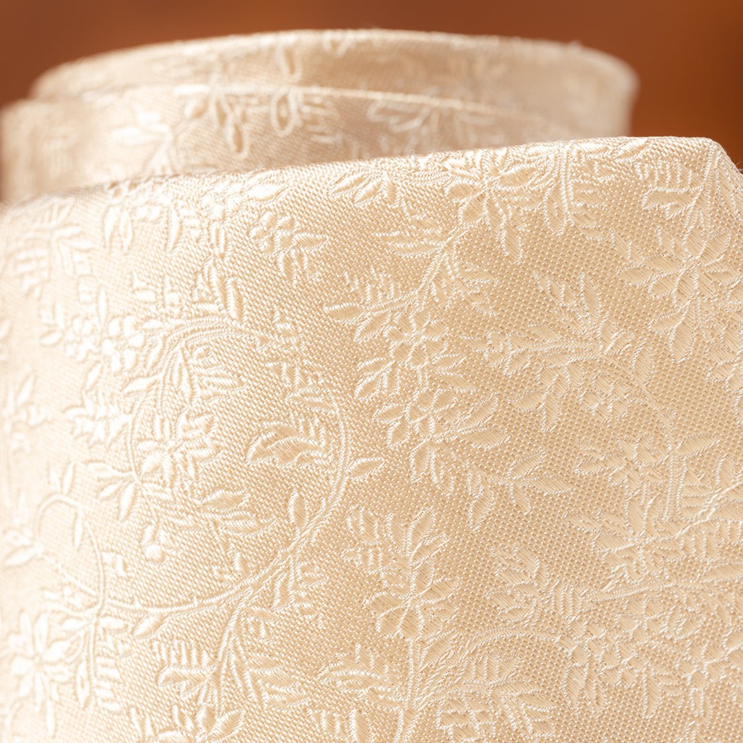 -Silk: Champagne gold subtle floral; woven in England, in a small batch, exclusively for Wildwood & Company.