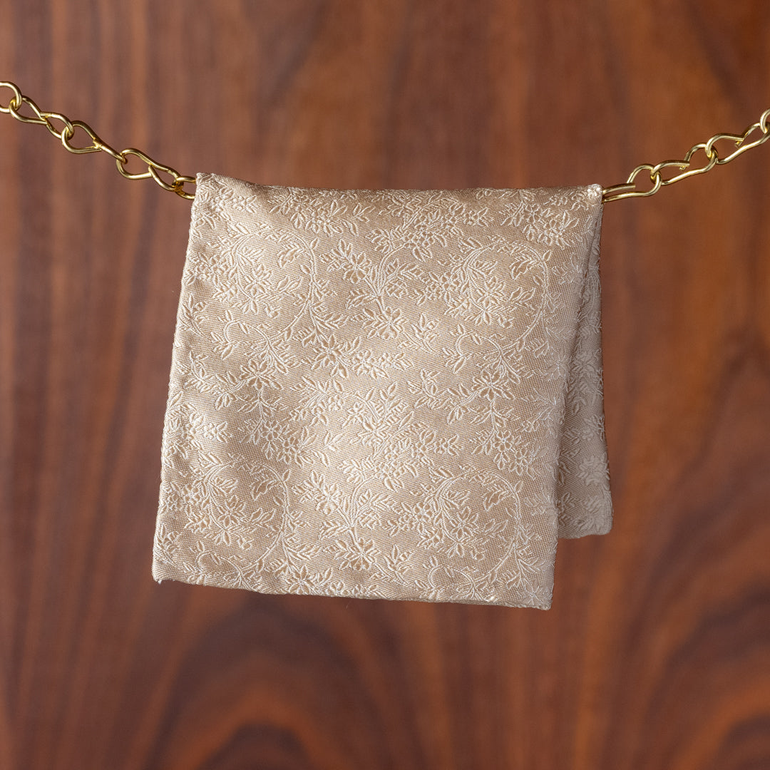 -Silk: Champagne gold subtle floral; woven in England, in a small batch, exclusively for Wildwood & Company.