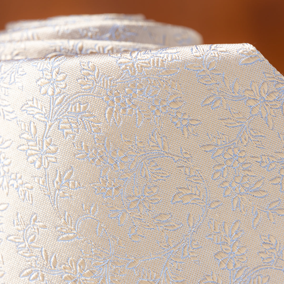 -Silk: Light blue subtle floral; woven in England, in a small batch, exclusively for Wildwood & Company.