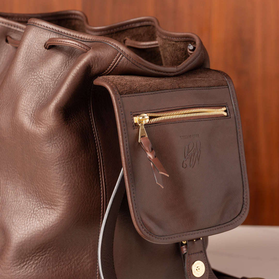 Produced by Frank Clegg, the finest leather workers in the States, this Classic Leather Backpack was handmade in Massachusetts. Priding themselves on every aspect of making, Frank Clegg hold the highest standard when it comes to tanning, construction, and finishing leather goods.