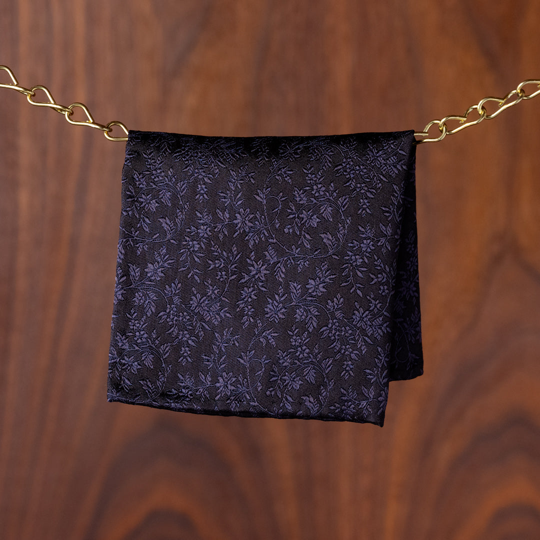 -Silk: Dark blue subtle floral; woven in England, in a small batch, exclusively for Wildwood & Company.