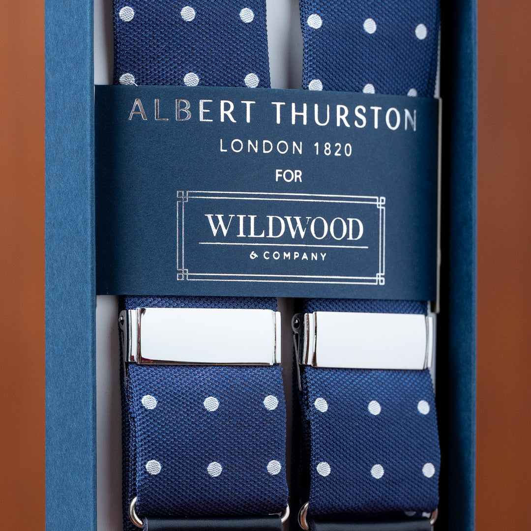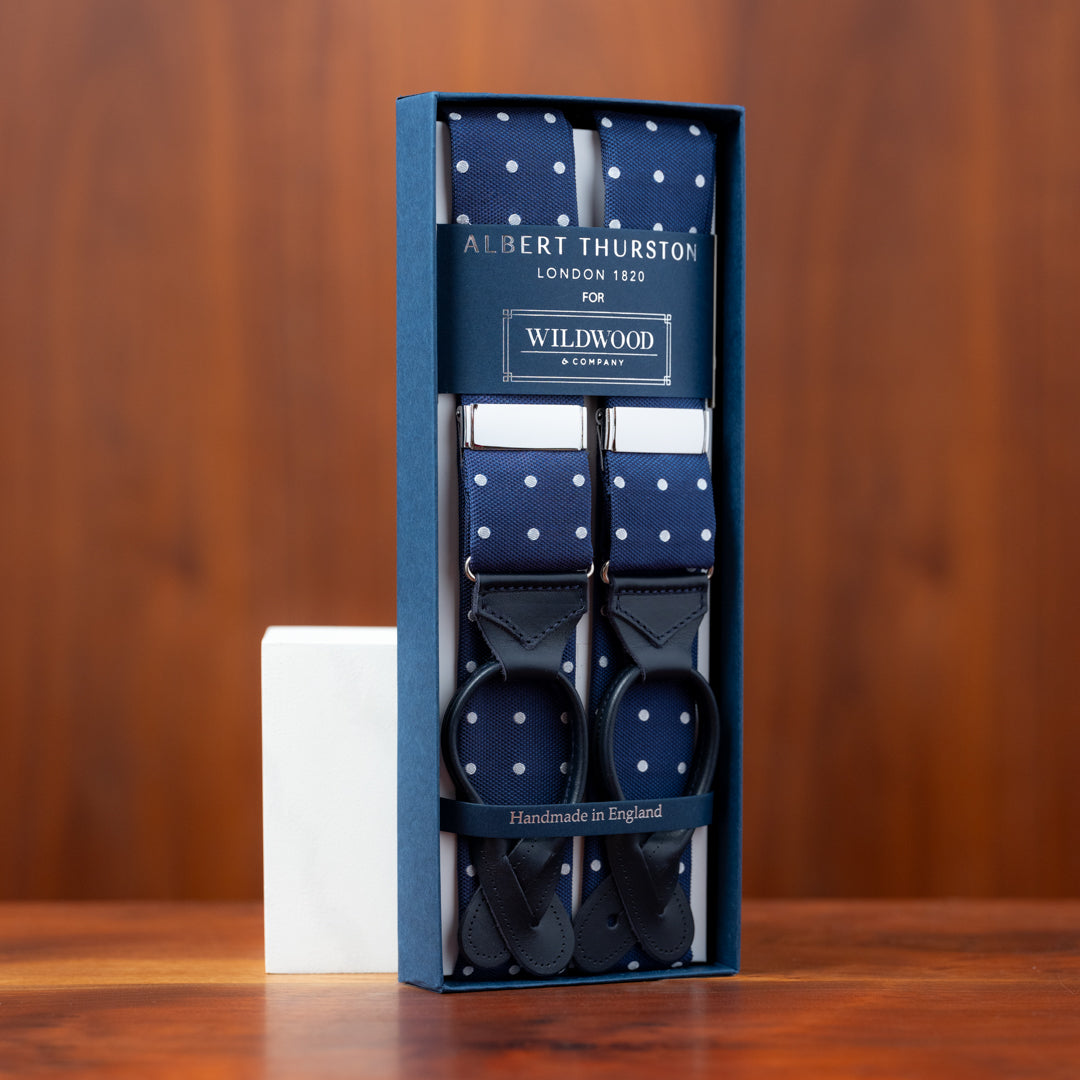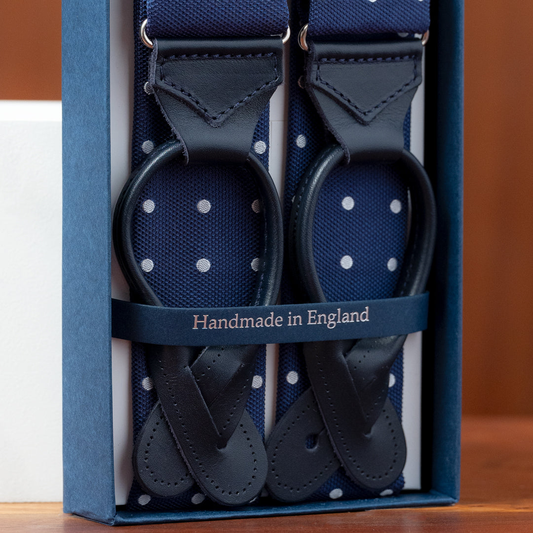 Dark Blue with White Polka Dots Silk Suspenders