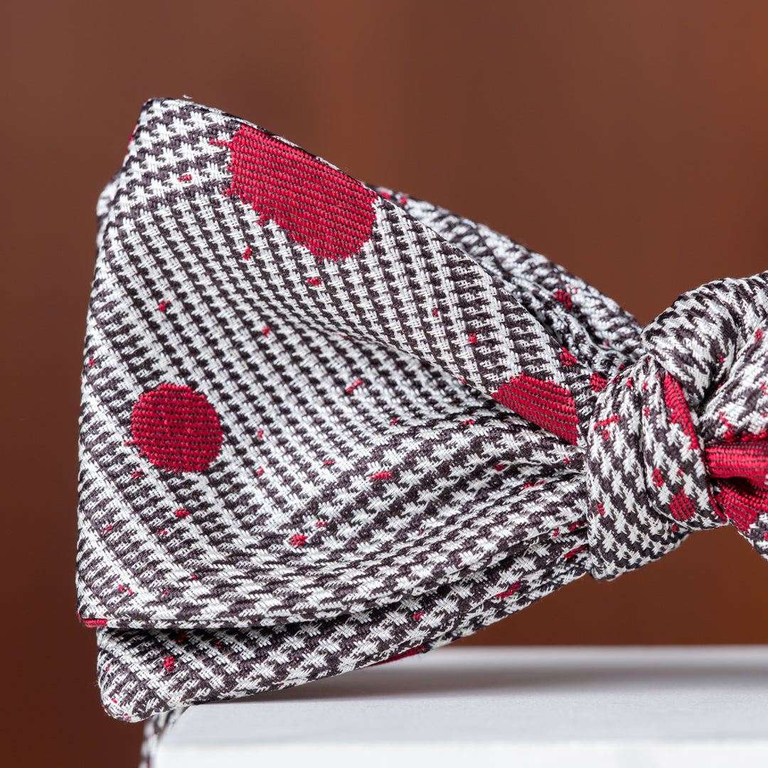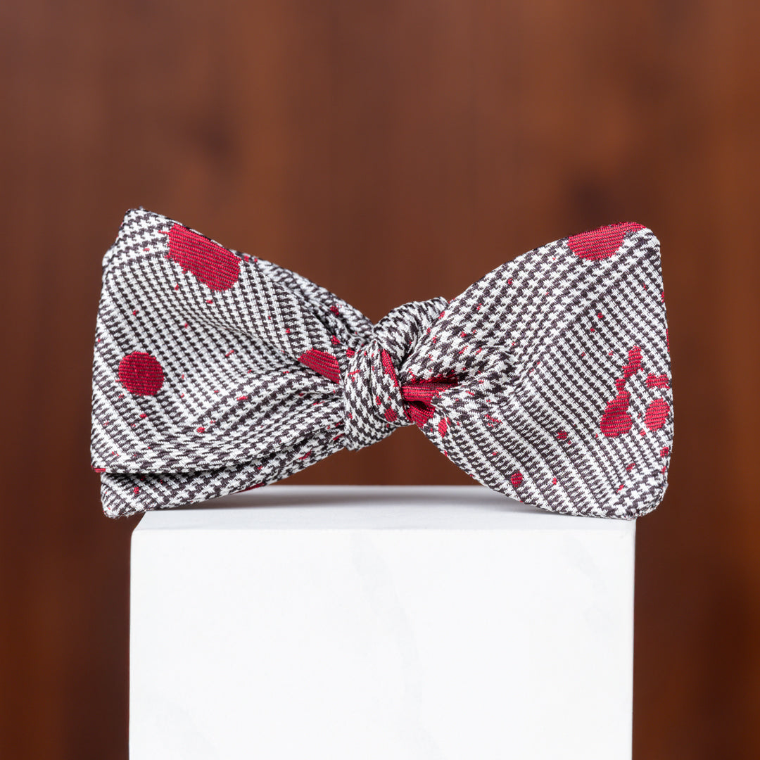 Glen Plaid with Red Paint Splatter Silk Bow Tie