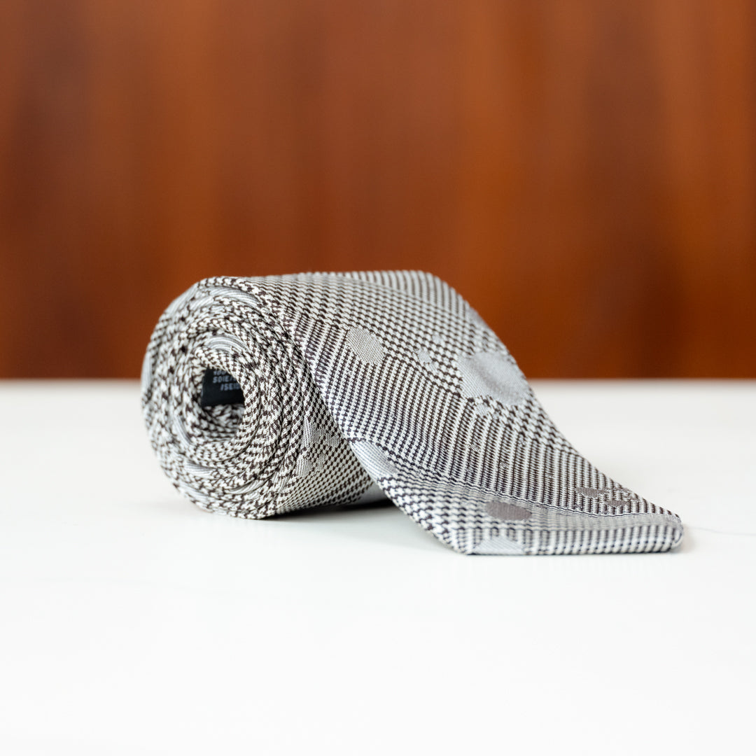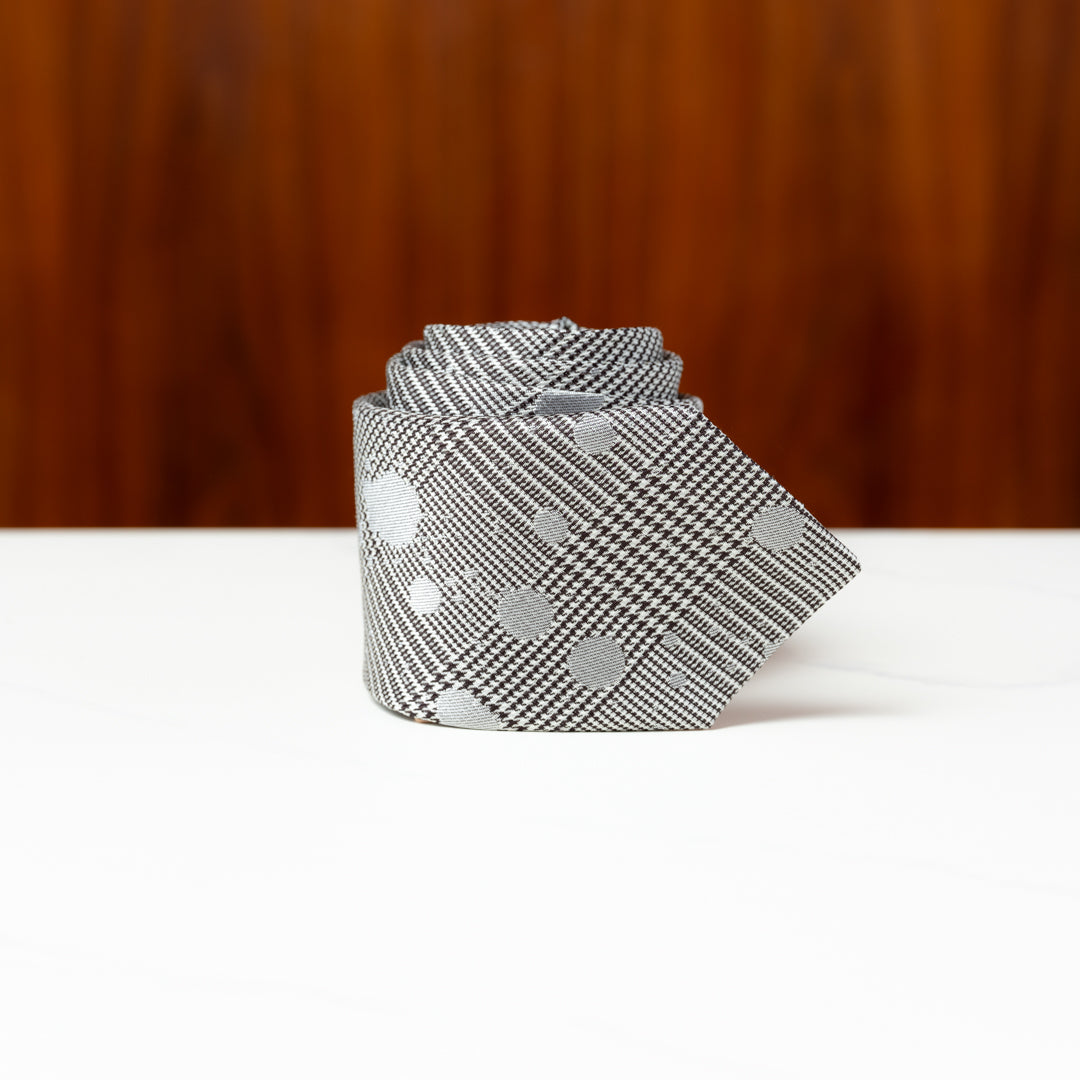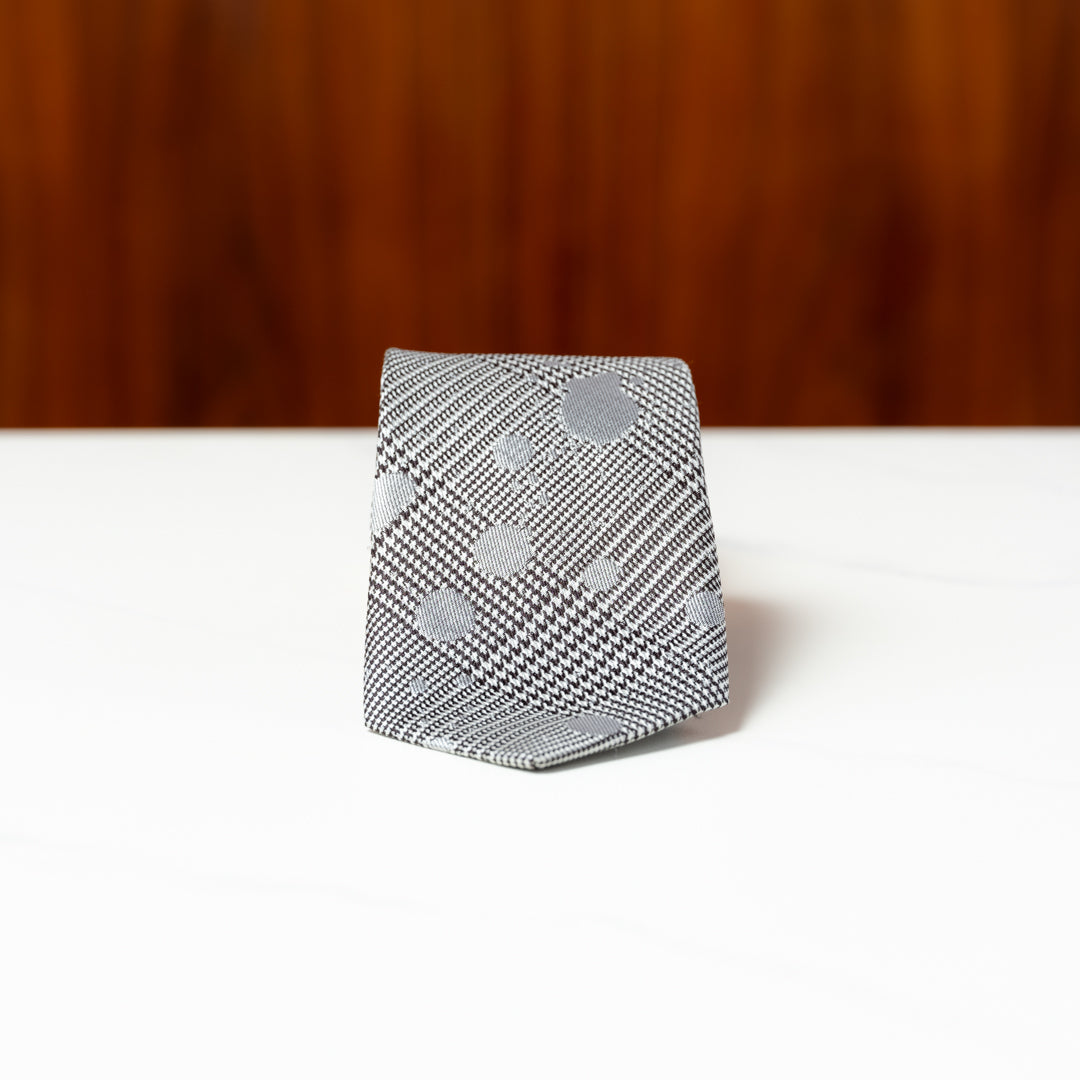 Glen Plaid with Silver Paint Splatter Silk Necktie