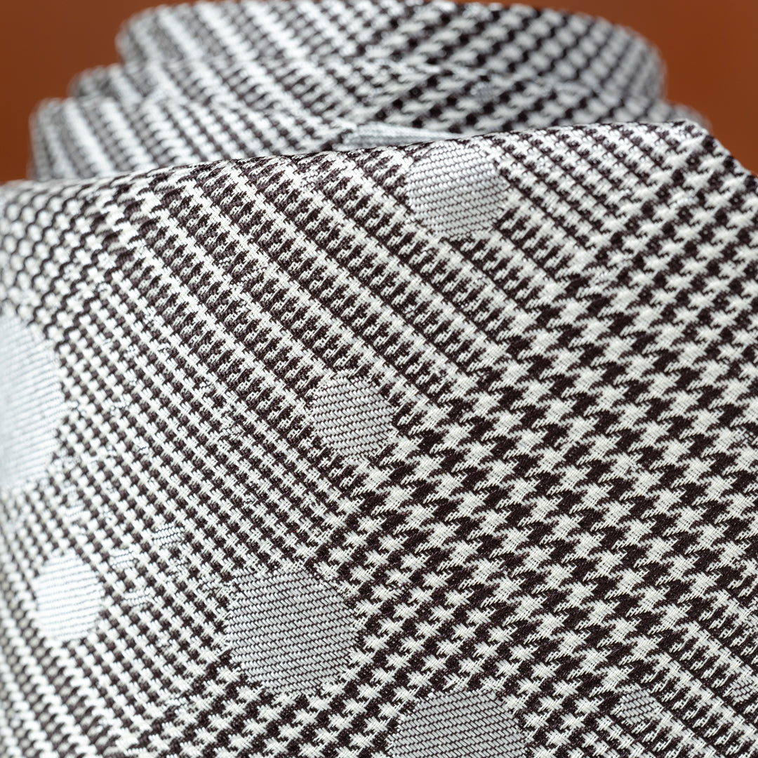 -Silk: Glen plaid with silver paint splatter; woven in England, in a small batch, exclusively for Wildwood & Company.
