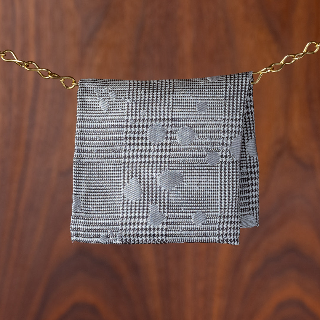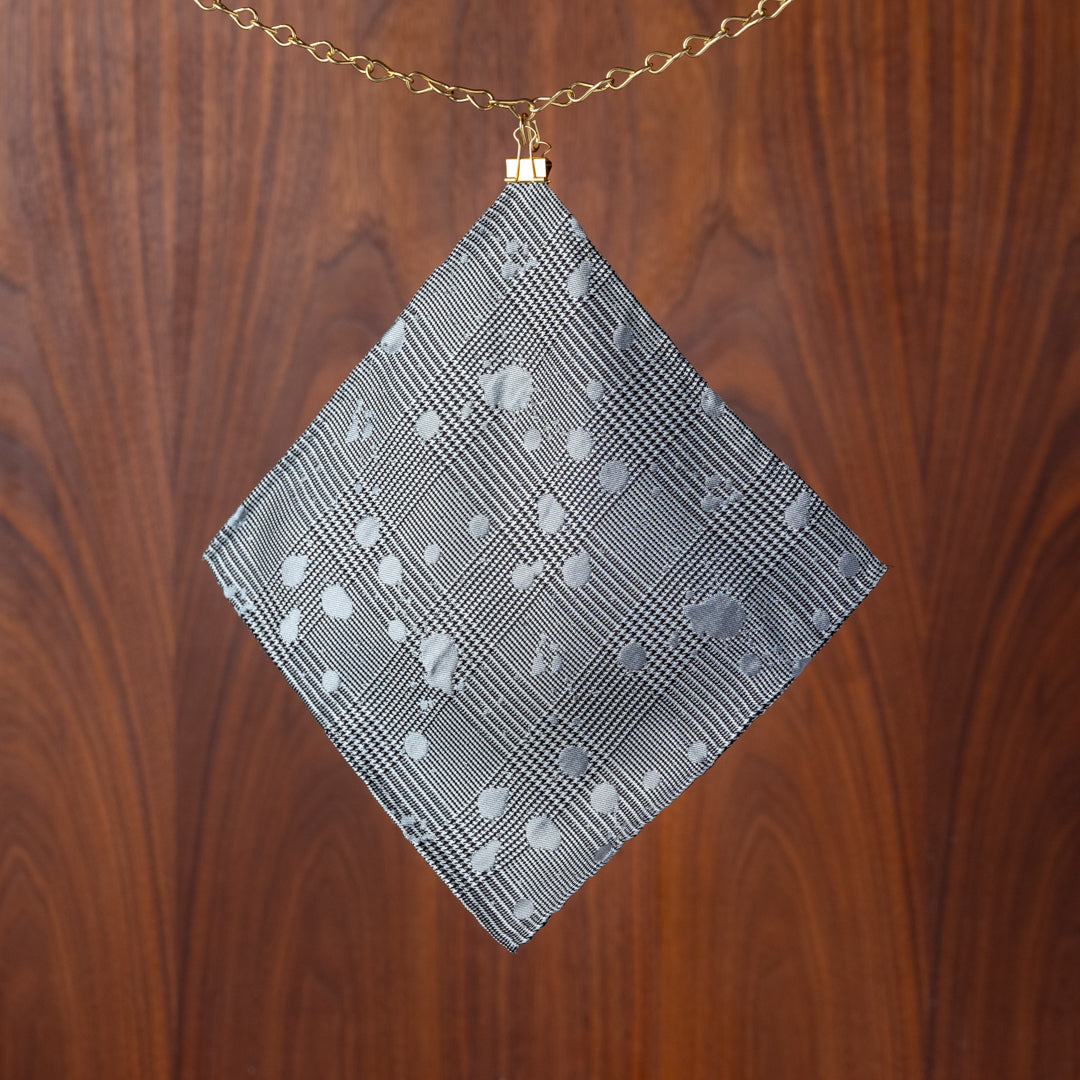 Glen Plaid with Silver Paint Splatter Silk Pocket Square