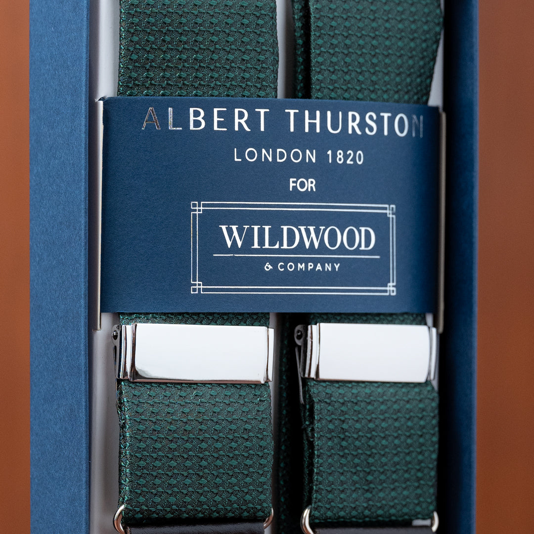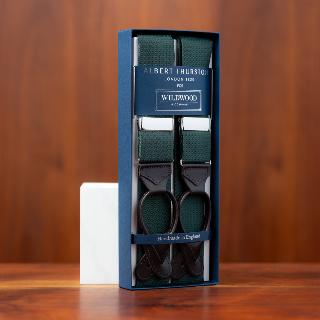 These suspenders (also known as braces in the UK) are handmade in our own unique silk, in collaboration with Albert Thurston, the world's top maker of suspenders since 1820 (who has also made braces for every James Bond film).