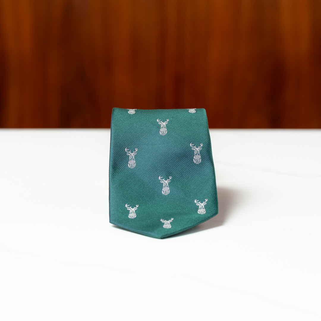 Green with Wildwood Stag Silk Necktie