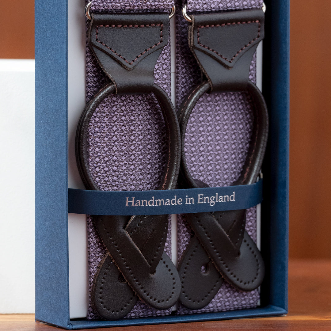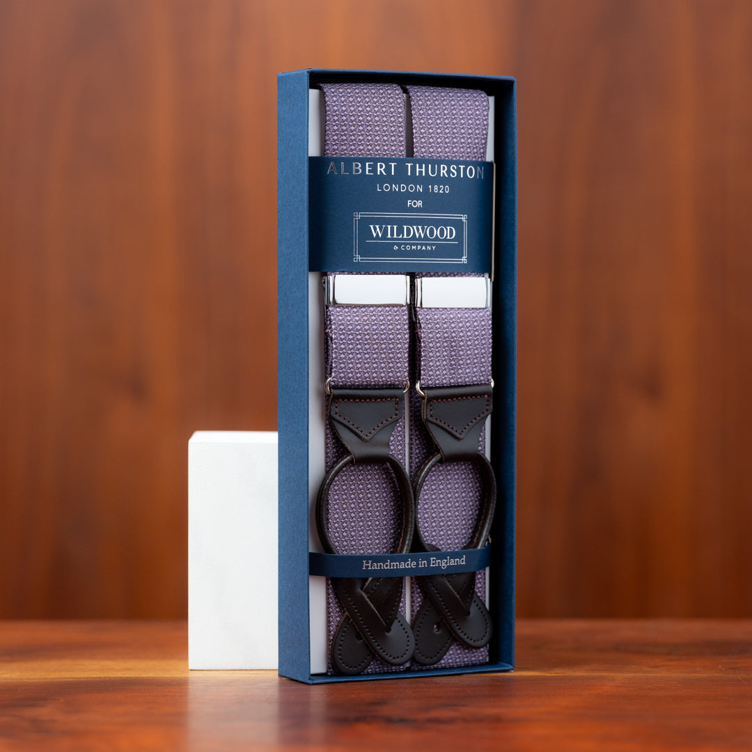 These suspenders (also known as braces in the UK) are handmade in our own unique silk, in collaboration with Albert Thurston, the world's top maker of suspenders since 1820 (who has also made braces for every James Bond film).
