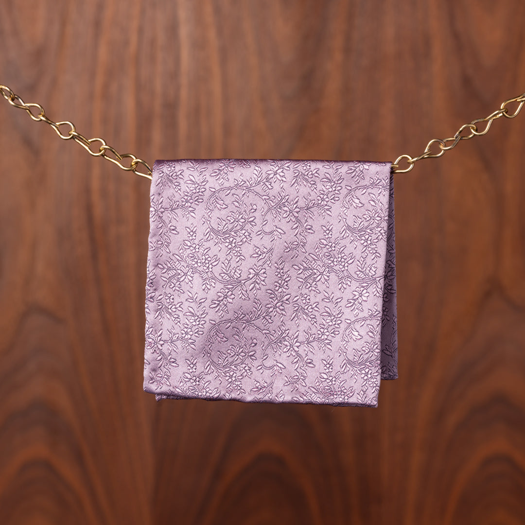 -Silk: Lavender subtle floral; woven in England, in a small batch, exclusively for Wildwood & Company.