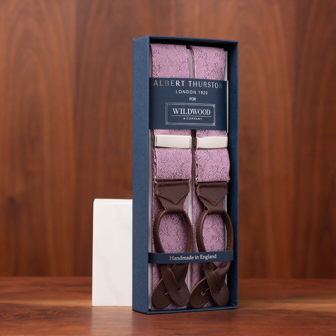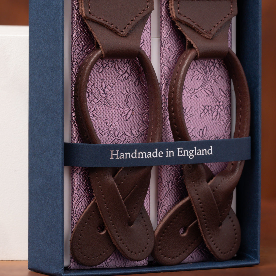 These suspenders (also known as braces in the UK) are handmade in our own unique silk, in collaboration with Albert Thurston, the world's top maker of suspenders since 1820 (who has also made braces for every James Bond film).