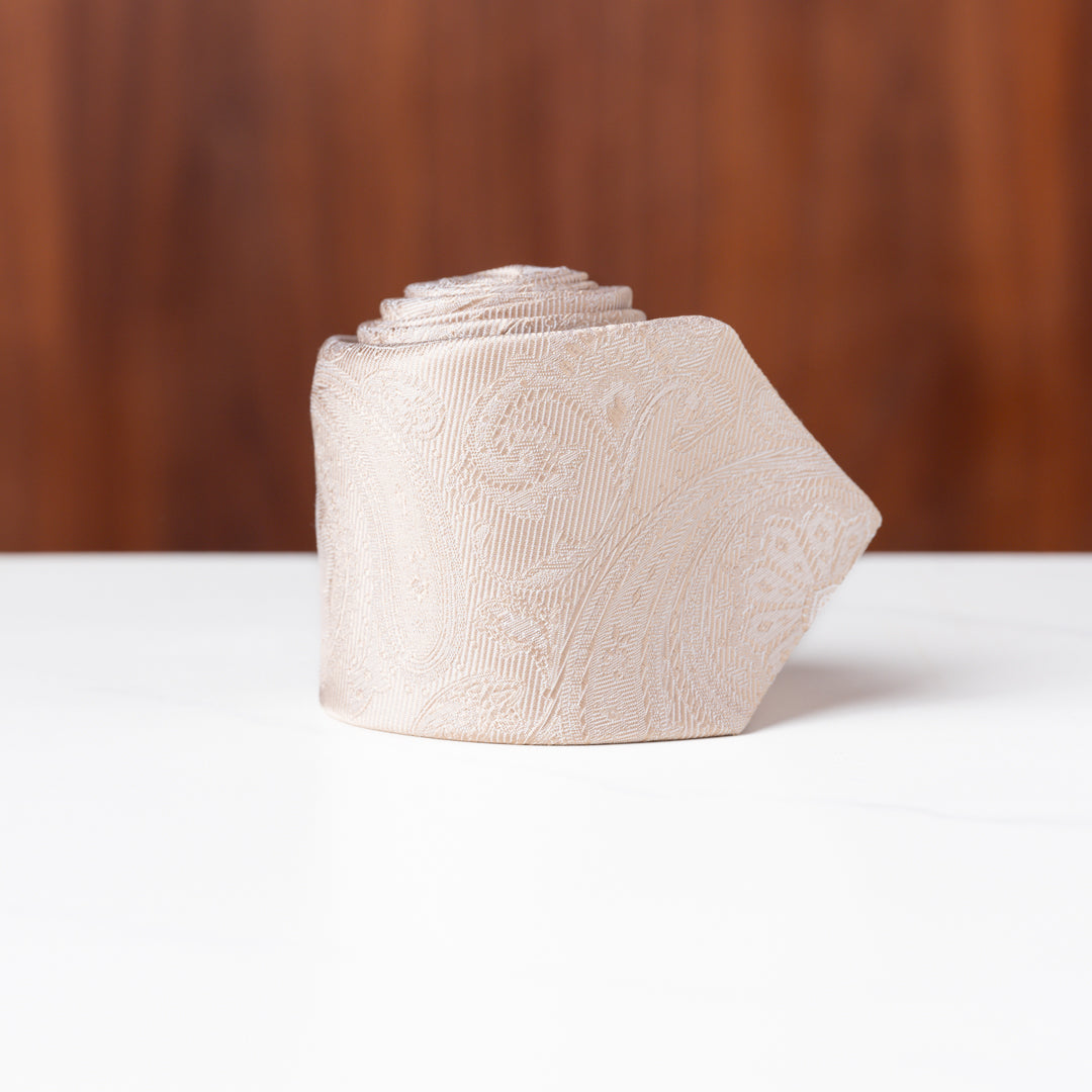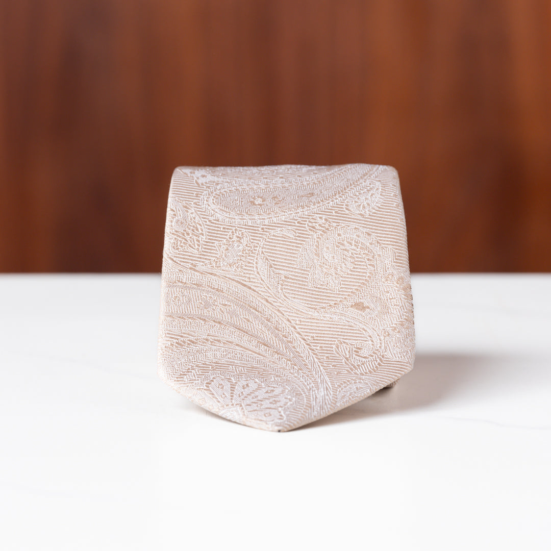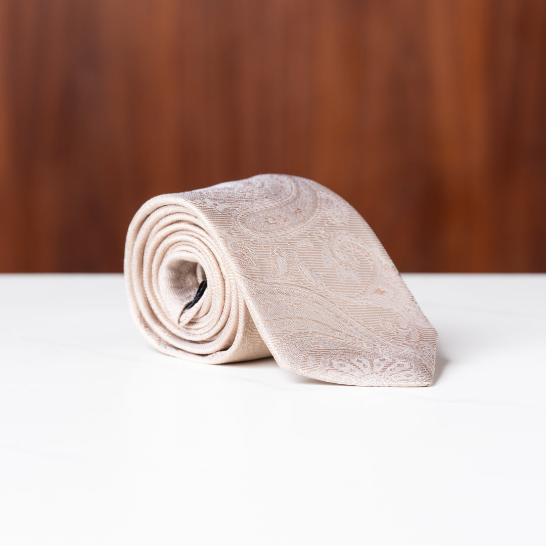 -Silk: Champagne tonal house paisley; woven in England, in a small batch, exclusively for Wildwood & Company.