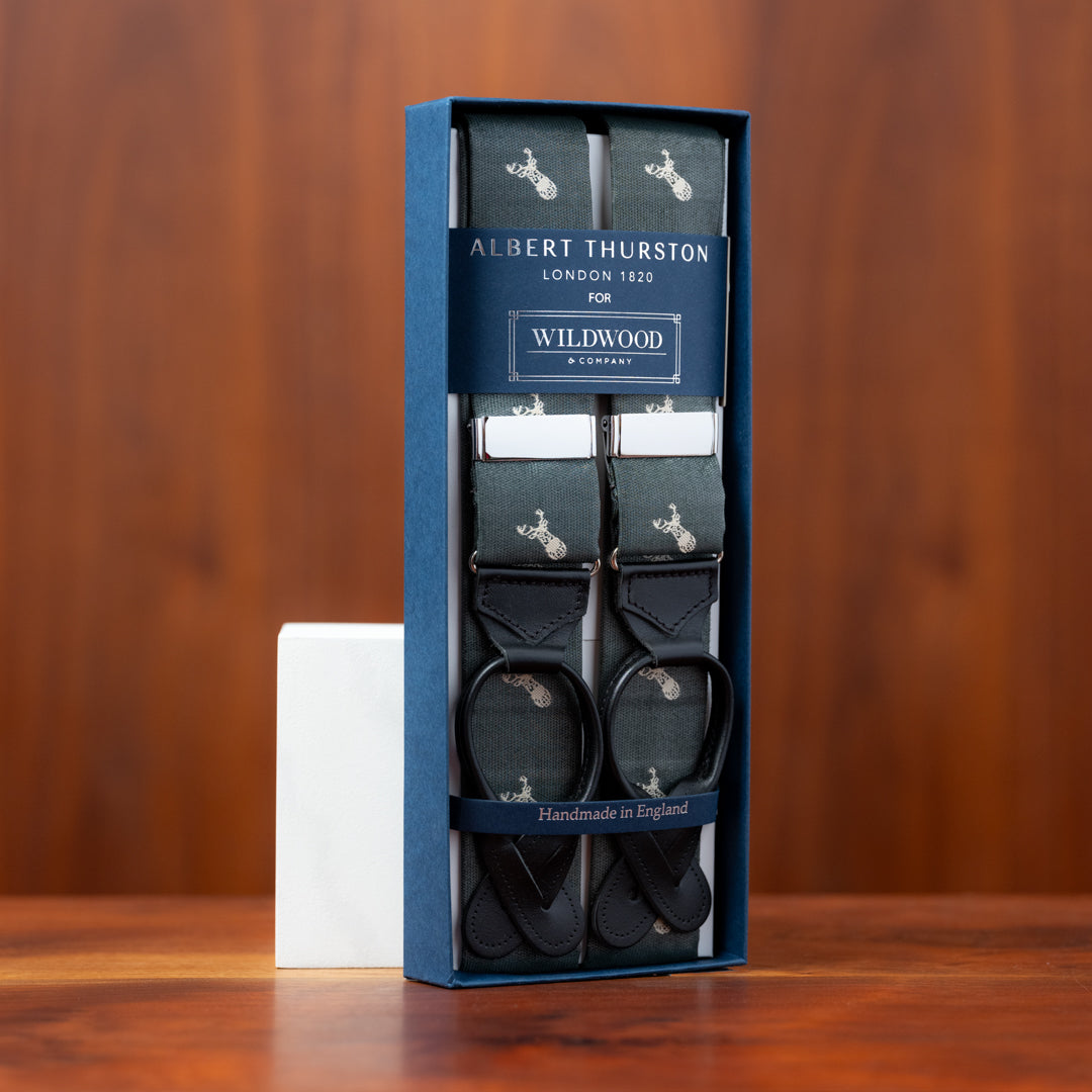 Silver with Wildwood Stag Silk Suspenders
