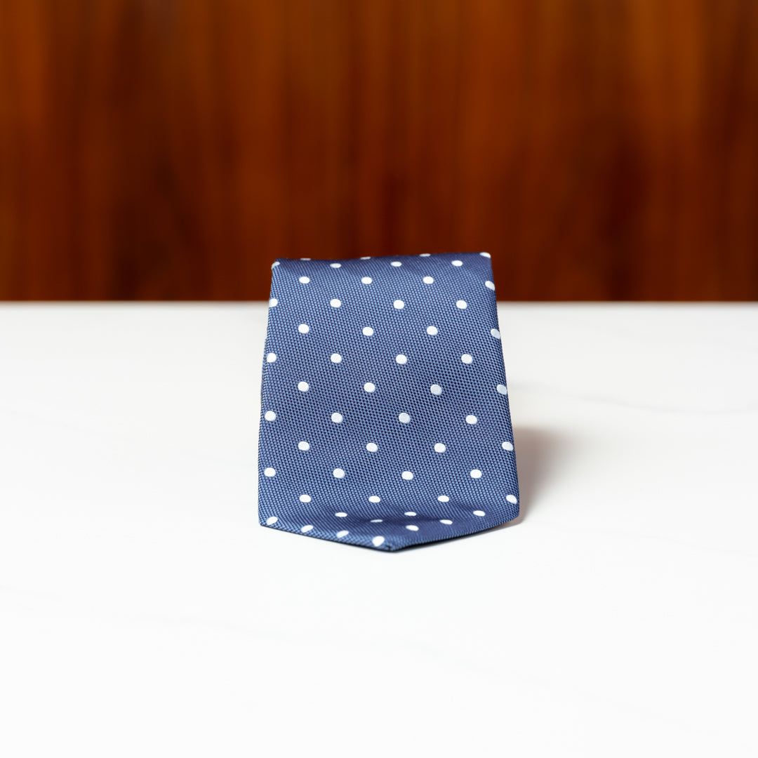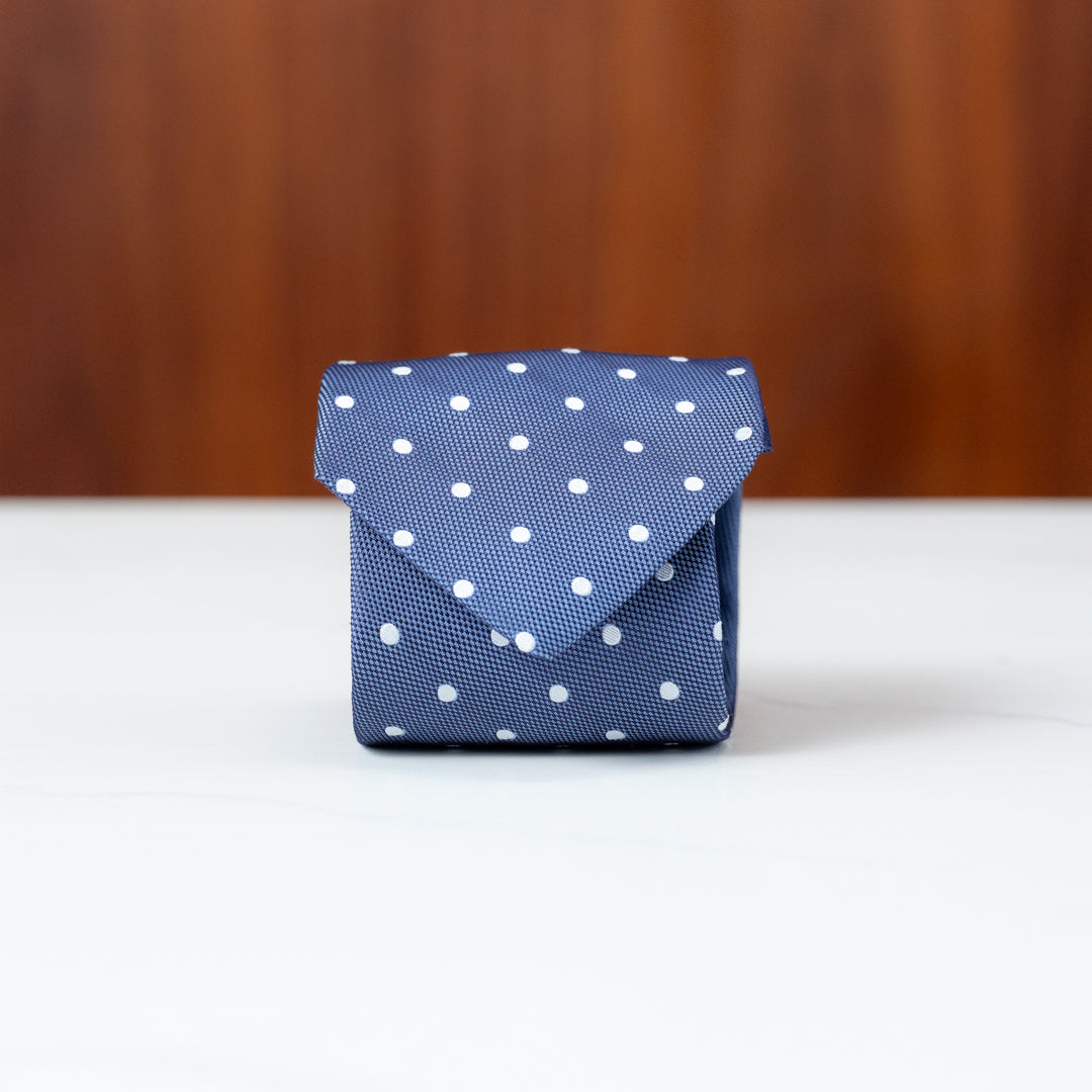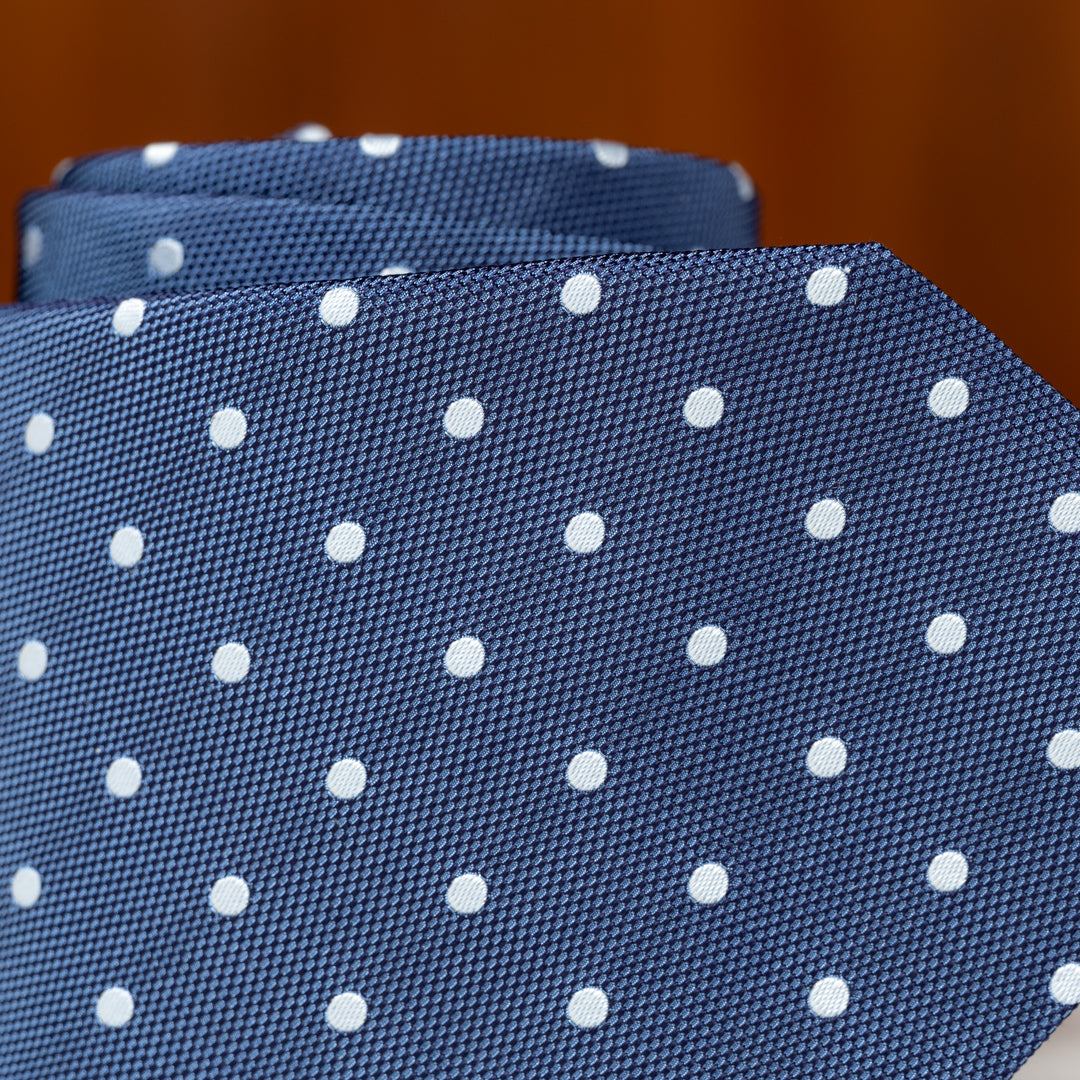 -Silk: Slate blue with white polka dots; woven in England, in a small batch, exclusively for Wildwood & Company.