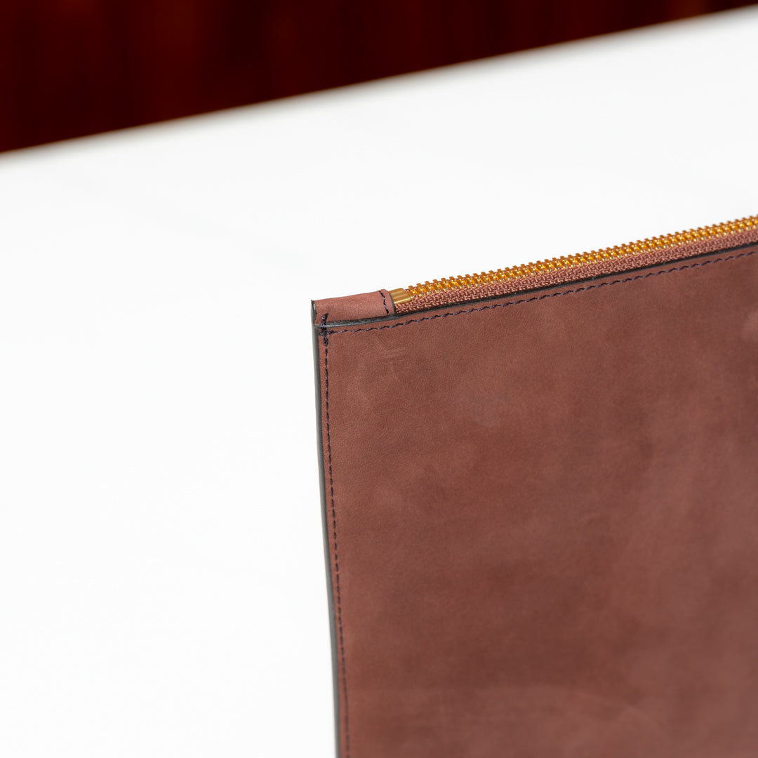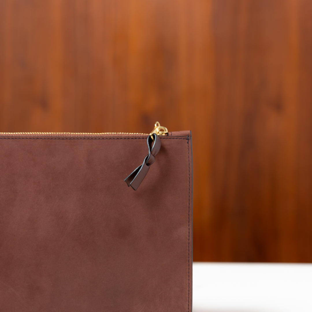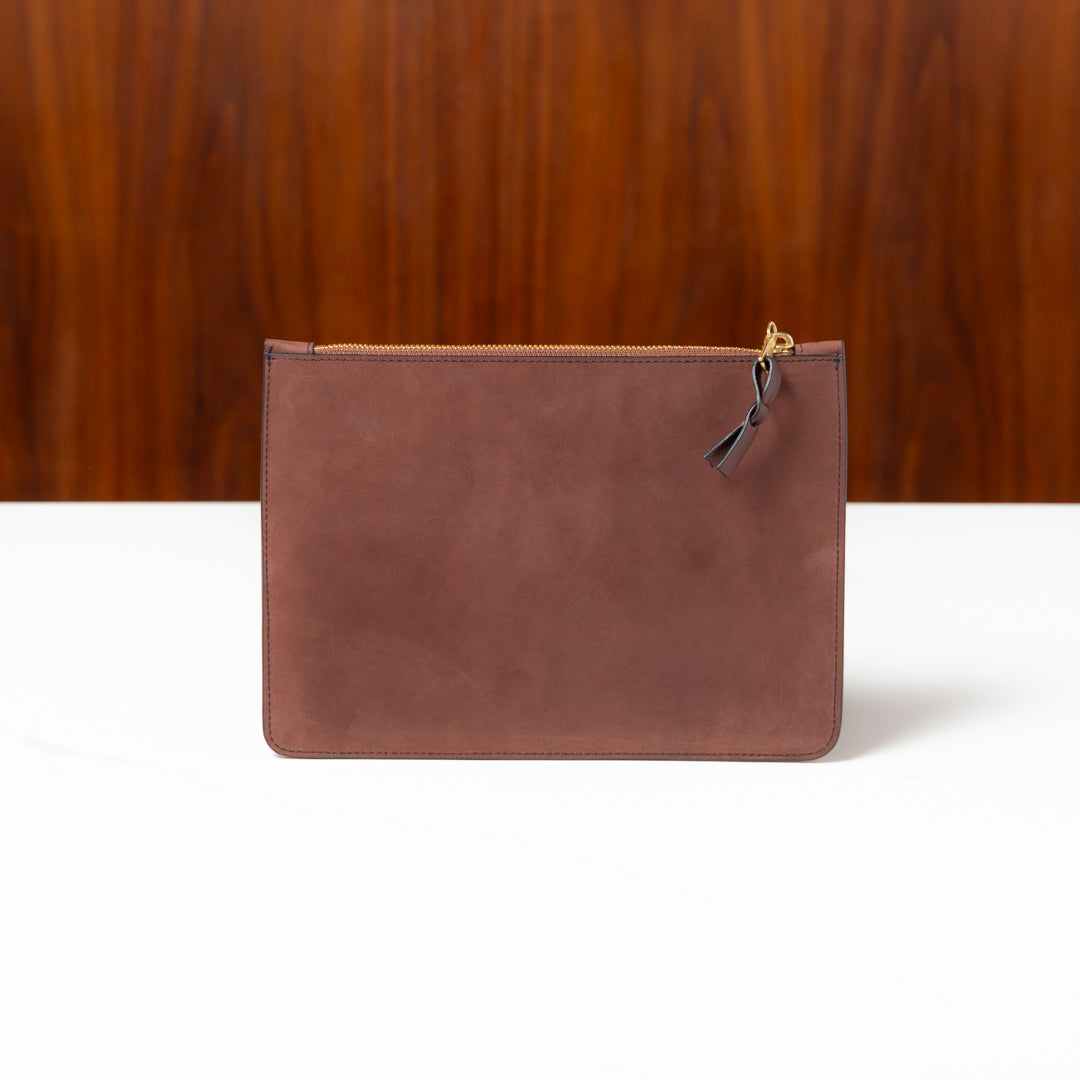 Produced by Frank Clegg, the finest leather workers in the States, this suede medium zipper pouch was handmade in Massachusetts. Priding themselves on every aspect of making, Frank Clegg hold the highest standard when it comes to tanning, construction, and finishing leather goods.