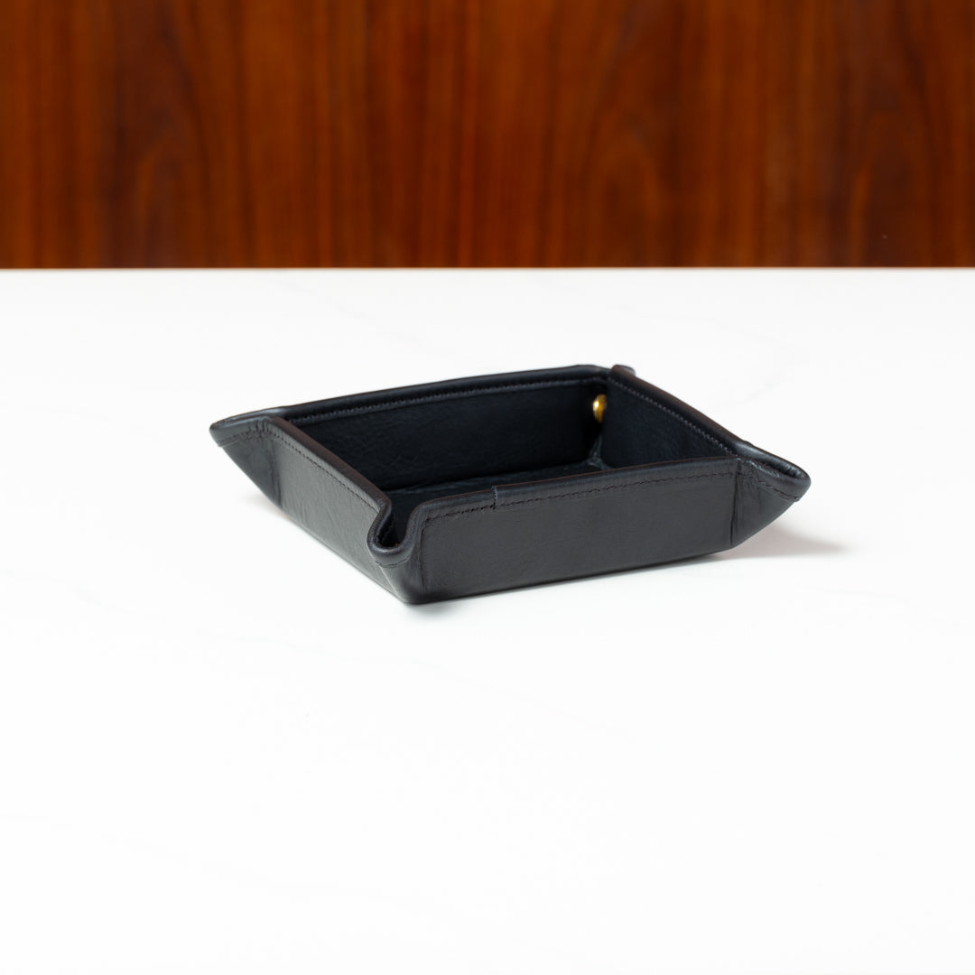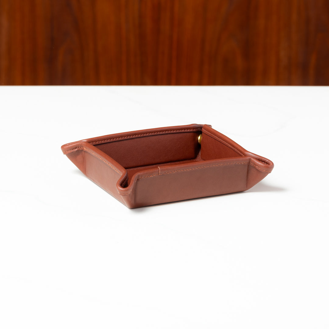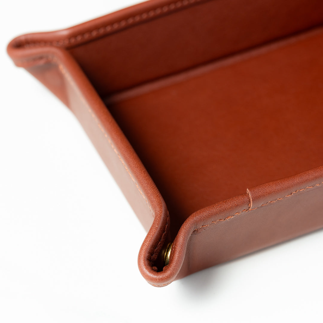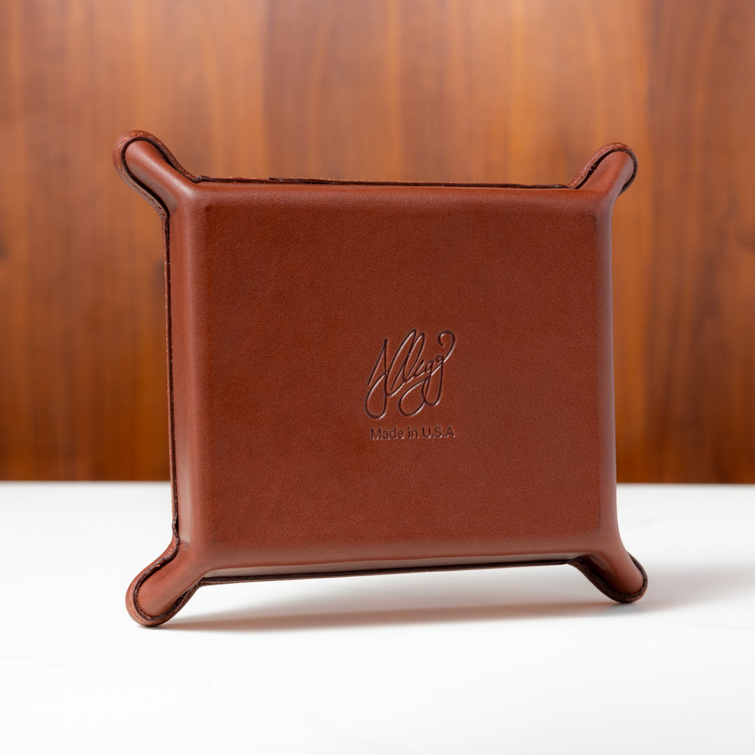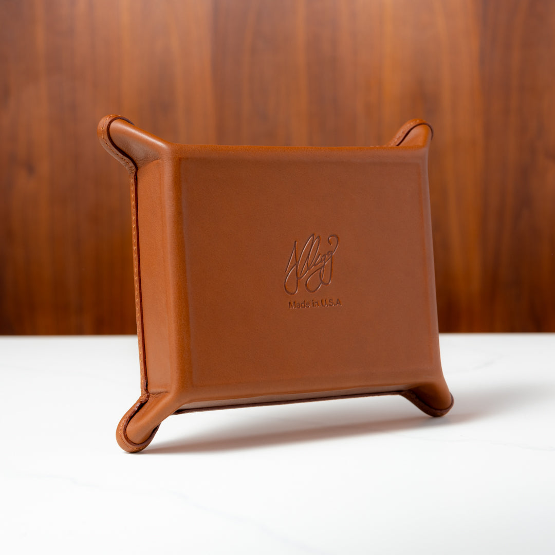 Produced by Frank Clegg, the finest leather workers in the States, this smooth tumbled leather valet tray was handmade in Massachusetts. Priding themselves on every aspect of making, Frank Clegg hold the highest standard when it comes to tanning, construction, and finishing leather goods.